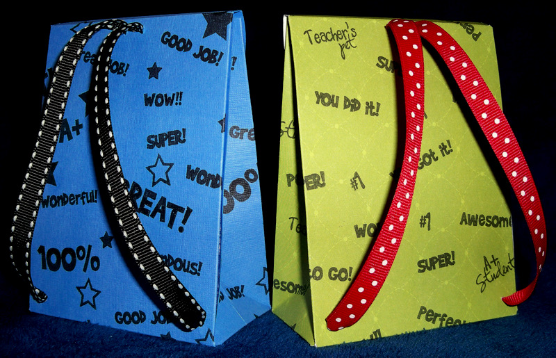 This one was made using textured cardstock. I cut the container out and then I made my own patterned paper by stamping it with BEAUTIFUL sentiments off of PK-851 Teacher Says! Phrases & Faces. This set is AWESOME. As a mom I am all for having these kinds of encouraging sentiments on hand. I was going with a star theme on this one, so for my home made patterned paper I filled in with some awesome star stamps from Market Street Stamps' 'Blast Off' stamp set. And yes, that darling star in the front is a Peachy Keen Stamp. All I did was cut out a star from George and Basic Shapes at 2.25" and this darling 'You are a star...' stamp fits perfectly inside.